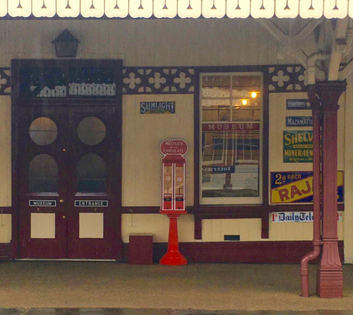 The railway’s museum team discovered some of the enamel signs that were outside the building in 1970 had been moved to other parts of the railway and so have put them all back in the same positions and cleaned them ready for the photo opportunity. They include signs for Sunlight soap, Rowntree’s chocolates, Mazawattee tea, Shelvey’s mineral waters and Rajah cigars.